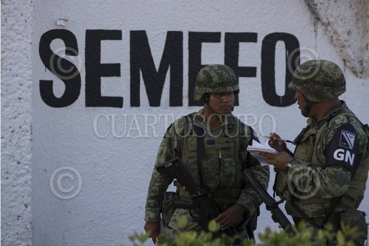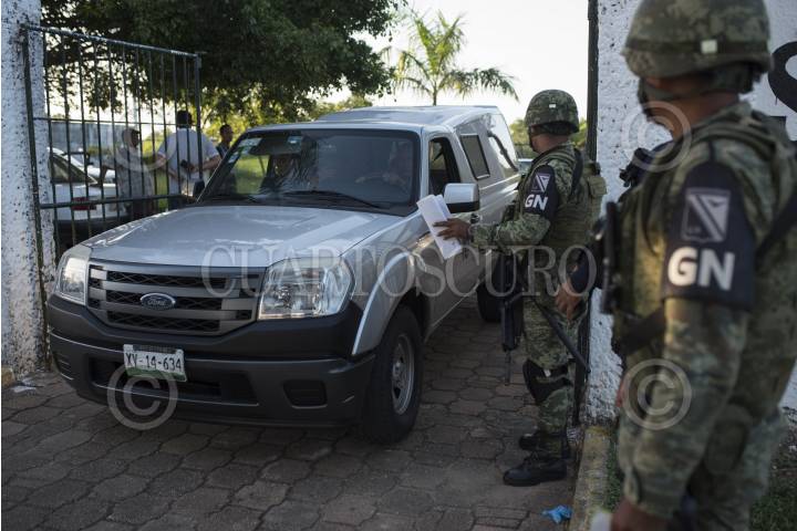 COATZACOALCOS, VERACRUZ, 28AGOSTO2019.- Elementos de la guardia nacional custodian el SEMEFO del municipio de Cosoleacaque donde estan los cuerpos de las victimas de la masacre del bar caballo blanco, posteriormente los familiares de Xochilt Nayeli Irineo Gomez velan su cuerpo en la colonia Fertimex. FOTO: ÁNGEL HERNÁNDEZ /CUARTOSCURO.COM