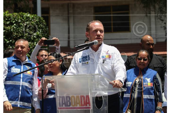 CIUDAD DE MÉXICO, 09ABRIL2024.- Santiago Taboada encabezó mitin en la Glorieta de los Ahuehuetes en Azcapotzalco donde militantes de Movimiento Ciudadano como Carlos Fernández Tinoco renunciaron para unirse a la Alianza del Pan, Pri, Prd. FOTO: ANDREA MURCIA /CUARTOSCURO.COM