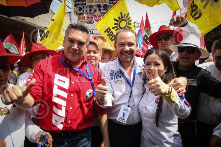 CIUDAD DE MÉXICO, 28ABRIL2024.- Santiago Taboada, candidato a la jefatura de gobierno por la coalición Va por México acompañado de Alejandro Moreno, presidente del PRI durante reunión y recorrido con Carnavaleros de la Alcaldía Gustavo A. Madero. FOTO: ANDREA MURCIA /CUARTOSCURO.COM
