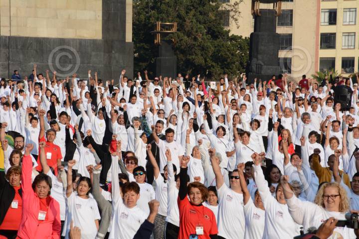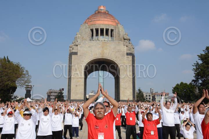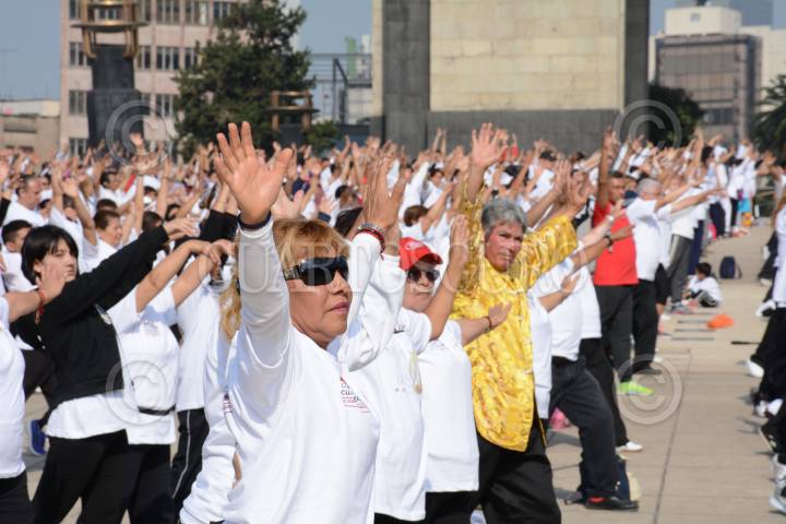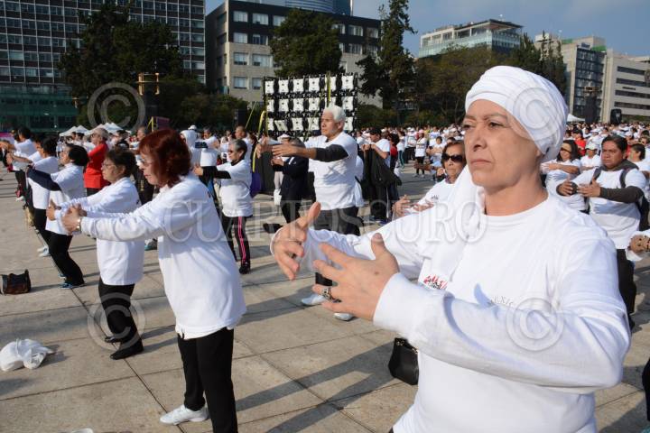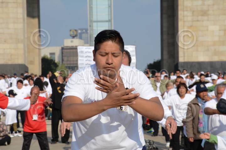 CIUDAD DE MÉXICO, 23ABRIL2017.- Más de 3 mil personas se reunieron en el Monumento a la Revolución, para participar en “México unido por el Taichi” donde se buscó romper el récord de número de participantes en una sola clase de esta disciplina fuera de su país de origen China. En el evento se reunieron practicantes de distintos estados de la república: Querétaro, Hidalgo, Puebla y el Estado de México. FOTO: MARIO JASSO /CUARTOSCURO.COM