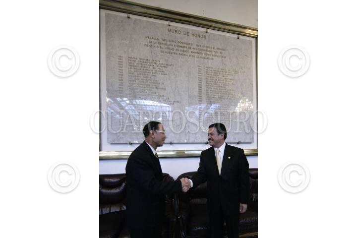 MÉXICO, D.F., 12ENERO2010.- Carlos Navarrete Ruiz, Presidente del Senado de la República, saluda de mano a el presidente del Senado de Tailandia, Prasobsook Boondech, con quien intercambiaron puntos de vista sobre cómo consolidar la relación diplomática de México con ese país. FOTO: CUARTOSCURO.COM