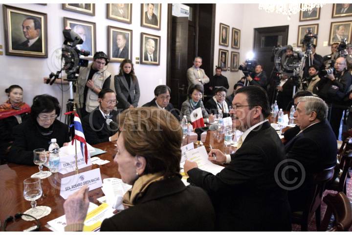 MÉXICO, D.F., 12ENERO2010.- Carlos Navarrete Ruiz, Presidente del Senado de la República durante la mesa de trabajo donde asistió, el presidente del Senado de Tailandia, Prasobsook Boondech, con quien intercambiaron puntos de vista sobre cómo consolidar la relación diplomática de México con ese país. FOTO: CUARTOSCURO.COM