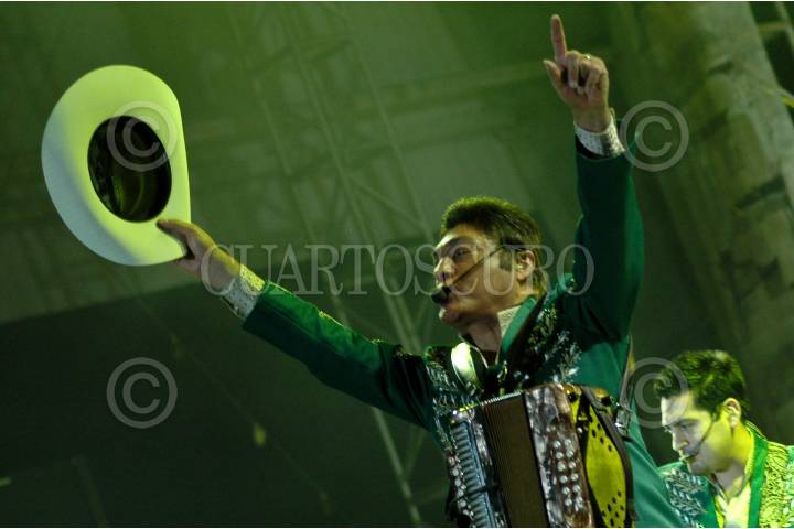 PAPANTLA, VERACRUZ, 20MARZO2009.- El grupo mexicano de música norteña Los Tigres del Norte, tocaron en concierto esta noche ante cientos de personas como parte de las actividades de Cumbre Tajín 2009 que se realiza en el parque temático Takilhsukut del 18 al 22 de marzo. FOTO: RODOLFO ANGULO/CUARTOSCURO.COM