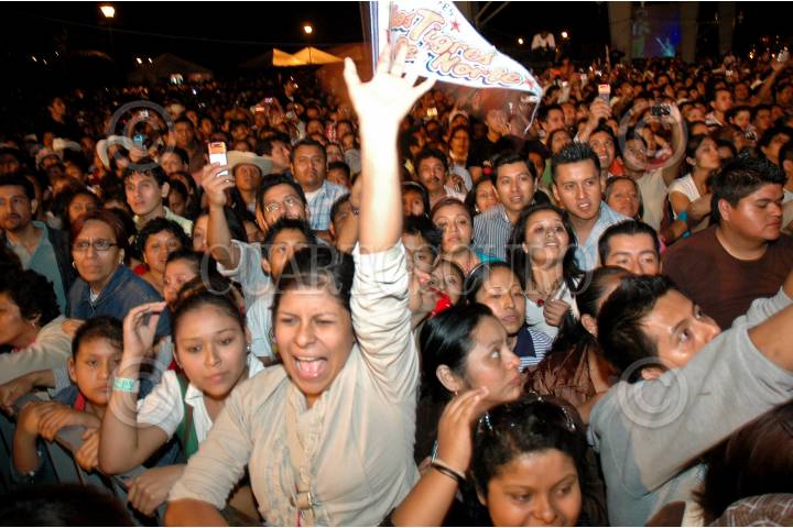 PAPANTLA, VERACRUZ, 20MARZO2009.- Cientos de espectadores presenciaron la actuación del grupo mexicano de música norteña Los Tigres del Norte, que se presentaron en concierto como parte de las actividades de Cumbre Tajín 2009 que se realiza en el parque temático Takilhsukut del 18 al 22 de marzo. FOTO: RODOLFO ANGULO/CUARTOSCURO.COM