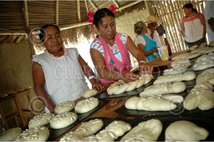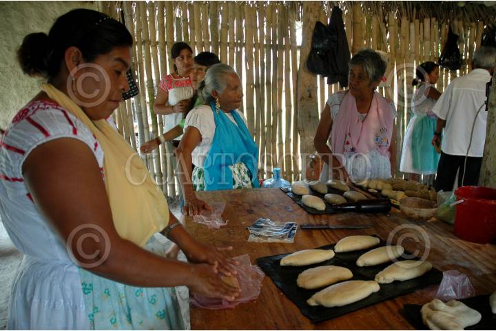 PAPANTLA, VERACRUZ, 21MARZO2009.- Mujeres indígenas preparan pan al estilo tradicional de sus comunidades totonacas dentro de las actividades de Cumbre Tajín 2009 que se realiza en el parque temático Takilhsukut del 18 al 22 de marzo. FOTO: RODOLFO ANGULO/CUARTOSCURO.COM