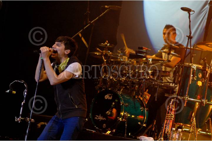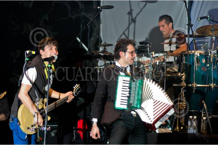 PAPANTLA, VERACRUZ, 22MARZO2009.- El grupo mexicano de rock electrónico, Kinky durante su presentación ayer por la noche ante cientos de personas dentro de las actividades de Cumbre Tajín 2009 y que se realiza en el parque temático Takilhsukut y que hoy llega a su fin. FOTO: RODOLFO ANGULO/CUARTOSCURO.COM