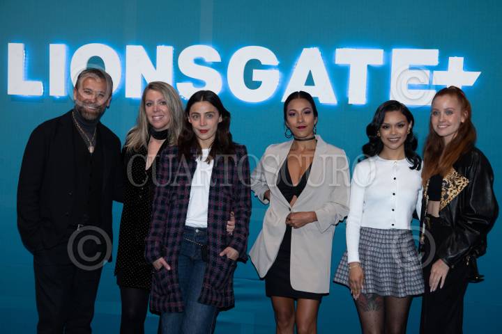 Juan Manuel Bernal, Lucia Puenzo, Ilse Salas, Yoshira Escarrega, Leidi Gutierrez y Natasha Dupeyron de la serie "Señorita 89" a su paso por la alfombra roja de la plataforma de streaming Lionsgate+ en el Antiguo Colegio de San Ildefonso.