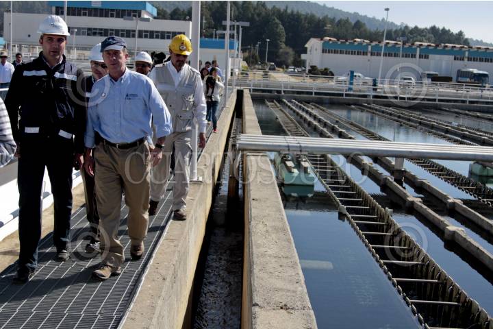 VILLA VICTORIA, ESTADO DE MÉXICO, 13DICIEMBRE2011.- José Luis Luege Tamargo, Director general de la Comisión Nacional del Agua (Conagua), realizó un recorrido donde puso en marcha la modernización de 24 filtros de los módulos de potabilización C, E, y F de la planta potabilizadora Los Berros del Sistema Cutzamala. FOTO: ENRIQUE ORDÓÑEZ/CUARTOSCURO.COM
