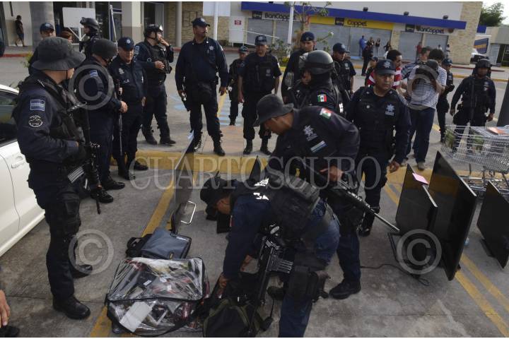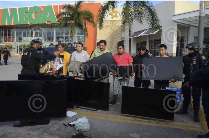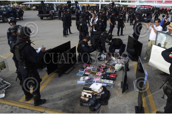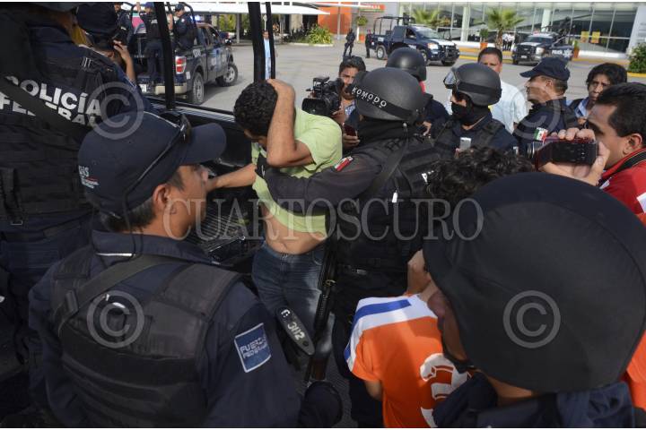 IGUALA, GUERRERO, 22OCTUBRE2014.- Cinco personas fueron detenidas por personal de la Policía Federal por su probable responsabilidad en saquear la Plaza Tamarindos. FOTO: BERNANDINO HERNÁNDEZ /CUARTOSCURO.COM