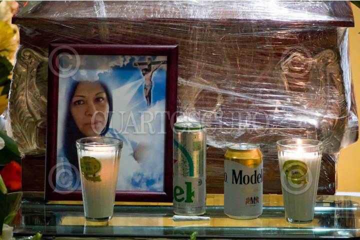 Familiares y amigos de Elvia Velázquez victima de feminicidio, velaron su cuerpo en una funeraria en la colonia Emiliano Carranza.