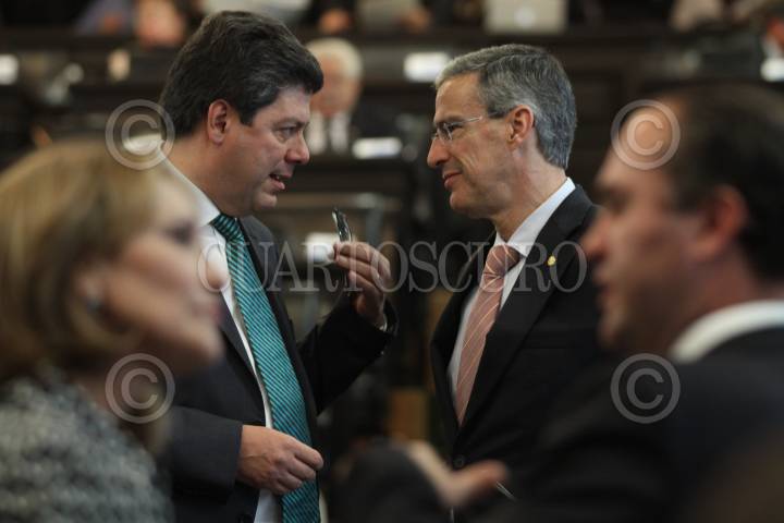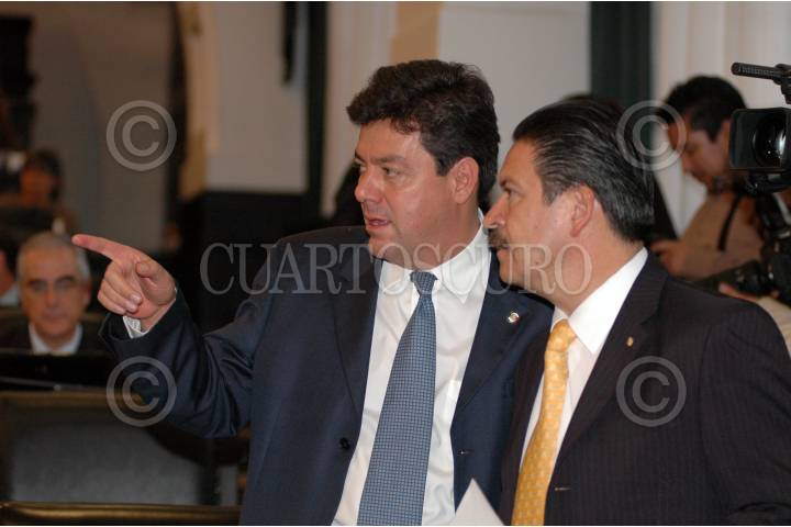 MÉXICO, D.F., 27SEPTIEMBRE2007.- Los senadores Guillermo Tamborrel del PAN y Carlos Navarrete del PRD, durante la sesion en el senado de la república. FOTO: IGNACIO GONZÁLEZ: CUARTOSCURO.COM