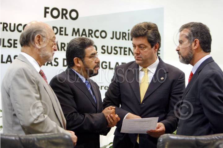 MÉXICO D.F., 13FEBRERO2008.- El senador Guillermo Tamborrel del PAN, durante el foro " Construcción del Marco Jurídico que Impulse el Desarrollo en las zonas de Manglar". en la gráfica lo acompañan el Dr. José Sarukhán, sen. Mario López del PRI, el lic. Mauricio Limón Aguirre, subsecretario de Gestión para la protección Ambiental de la SEMARNAT. FOTO: IGNACIO GONZALEZ/CUARTOSCURO.COM