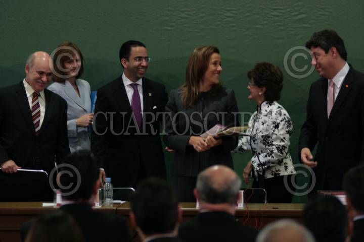 MÉXICO, D.F., 13JULIO2010.- Margarita Zavala, esposa del Presidente de México, encabezó el evento denominado "Resultados del Módulo de Trabajo Infantil 2009", que se celebro en el salón Adolfo López Mateos de la residencia oficial de los Pinos. En la imagen la acompañan, Eduardo Sojo, Javier Lozano, María Cecilia Landerreche y Guillermo Tamborrel Suárez. FOTO: MARCO POLO GUZMÁN HERNÁNDEZ/CUARTOSCURO.COM