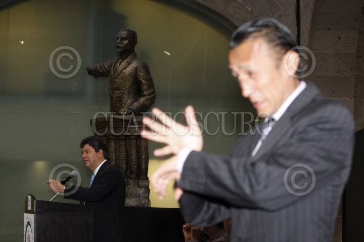 MÉXICO, D.F., 22NOVIEMBRE2011.- Guillermo Tamborrel Suárez, presidente de la comisión de Salud del Senado, y Ricardo Bucia Mújica, presidente del Consejo Nacional para prevenir la Discriminación, durante la presentación de la Encuesta Nacional sobre Discriminación en México "Trabajadoras Domésticas", en el Senado de la República. FOTO: MOISÉS PABLO/CUARTOSCURO.COM