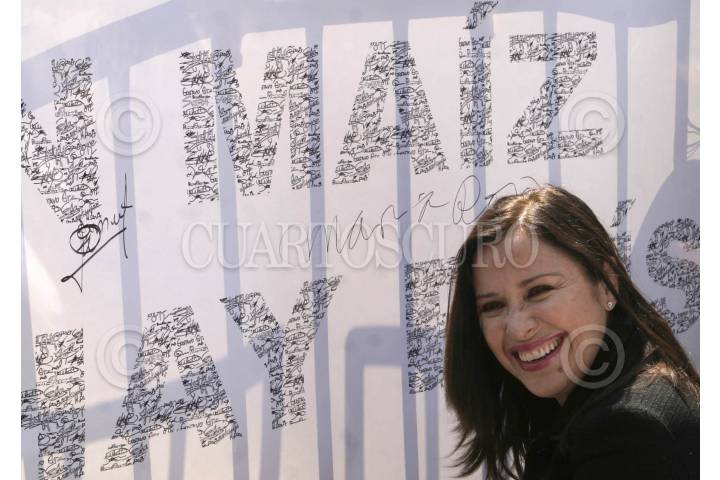 MEXICO, D.F., 12MARZO2008.- El movimiento "Sin Maiz No Hay Pais, Sin Frijol Tampoco" asistieron a las afueras del Senado de la República para entregar a legisladores más de medio millon de firmas y exigir la renegocioacion del apartado agricola del Tratado de Libre Comercio de America del Norte. En la imagen la actriz Vanessa Bauche. FOTO: SAÚL LÓPEZ/CUARTOSCURO.COM