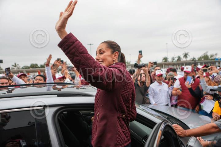 TAMPICO, TAMAULIPAS, 23ABRIL2024.- Claudia Sheinbaum, candidata presidencial por la coalición Sigamos Haciendo Historia, fue recibida por simpatizantes en el aeropuerto previo a la gira que realizará por este estado. FOTO: PRENSA CLAUDIA SHEINBAUM/CUARTOSCURO.COM