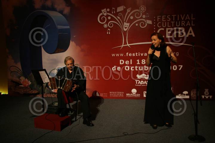 VILLAHERMOSA, TABASCO, 20OCTUBRE2007.- En el Planetario Tabasco Dos Mil se presento el dueto conformado por Valentina Álvarez y Coco Potenza, quienes interpretan canciones del genero tango con un sentimiento inigualable denominados “Tangos de mi flor”. FOTO: MARCO POLO GUZMÁN HERNÁNDEZ/CUARTOSCURO.COM
