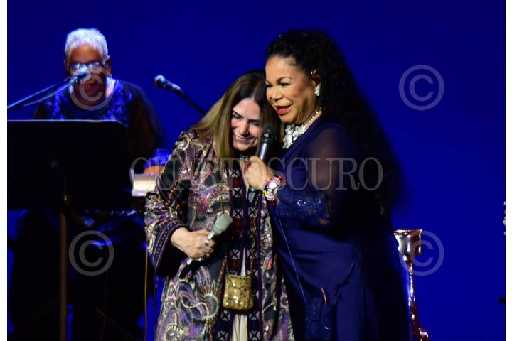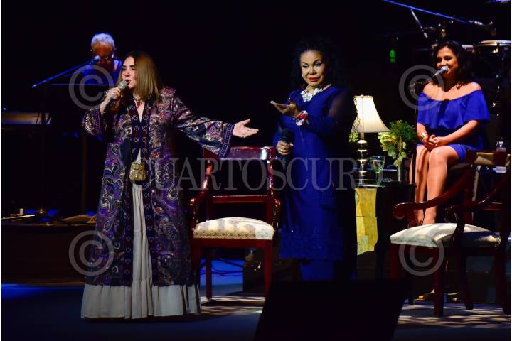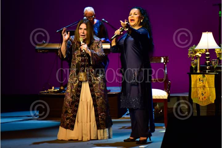 Tania Libertad y Eva Ayllón durante concierto en el Teatro de la Ciudad Esperanza Iris.