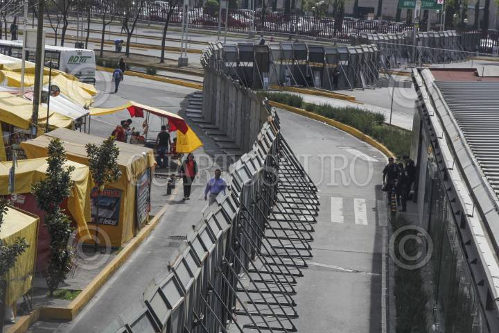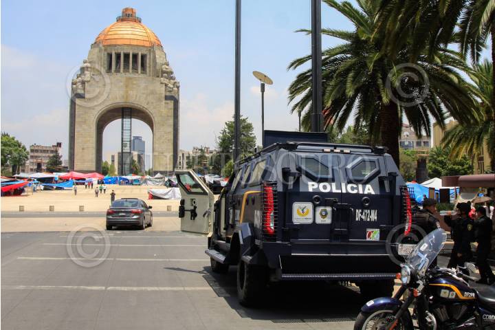 MÉXICO, D.F., 16JUNIO2015.- Policías del DF, mantienen el resguardo del monumento a la revolución alrededor del campamento de integrantes de la CNTE. FOTO: SAÚL LÓPEZ /CUARTOSCURO.COM