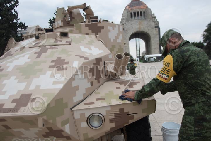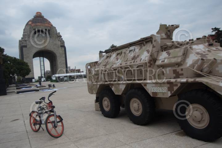 La Secretaria de la Defensa Nacional, se encuentra montando una Expo en la explanada del Monumento a la Revolución.