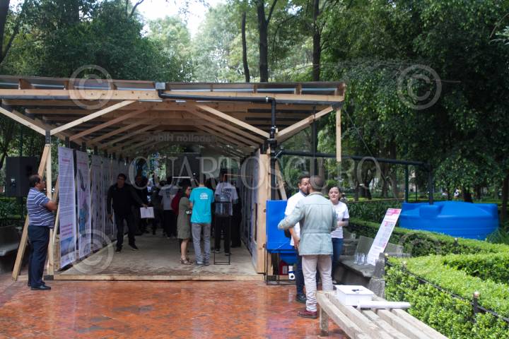 CIUDAD DE MÉXICO, 05JULIO2017.- En el Parque Uruguay se instaló el "Pabellón Hidríco", el cual explica la problemática que padece la Ciudad de México en el tema del agua; también se instaló un sistema de captación de agua pluvial y de purificación de agua potable. FOTO: MOISÉS PABLO /CUARTOSCURO.COM