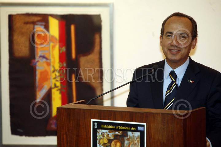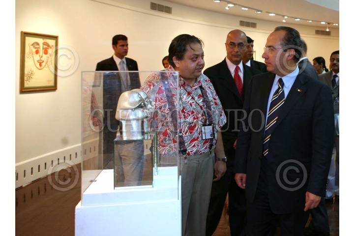 MUMBAI, REPUBLICA DE LA INDIA, 11SEPTIEMBRE2007.- Felipe Calderón Hinojosa, Presidente de México, durante la inauguración de la exhibición "Juan Soriano: Papel, Bonce, Plata y Tapíz", en la galería de arte moderno. FOTO: ARIEL GUTIERREZ/CUARTOSCURO.COM