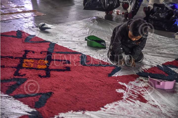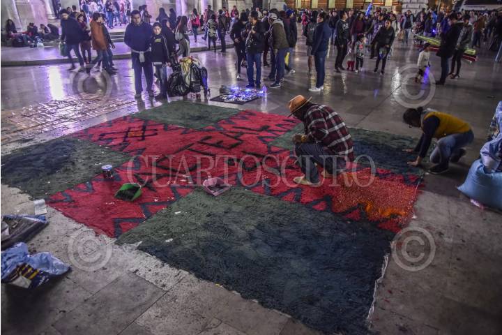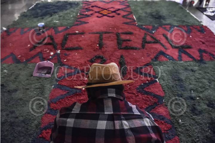CIUDAD DE MÉXICO, 22DICIEMBRE2018.- Personas de organizaciones sociales colocaron un tapiz de aserrín en la explanada de Bellas Artes en conmemoración del 21 aniversario de "La Matanza de Acteal". FOTO: MARIO JASSO /CUARTOSCURO.COM