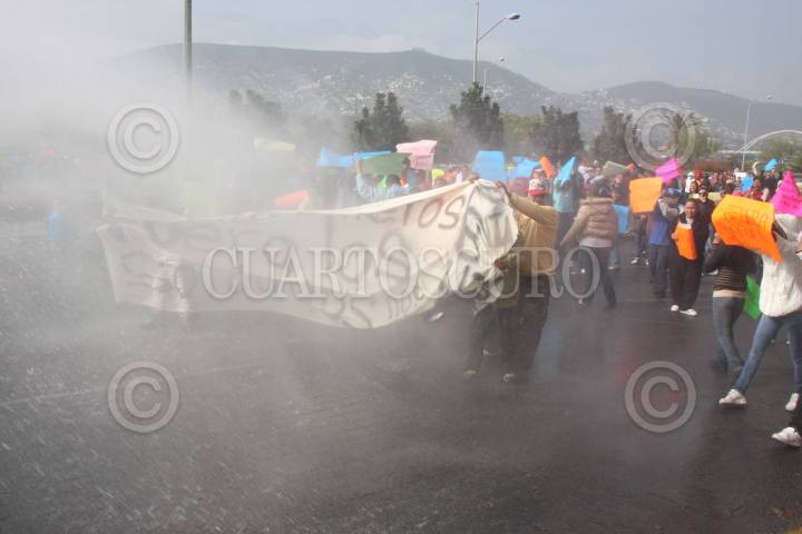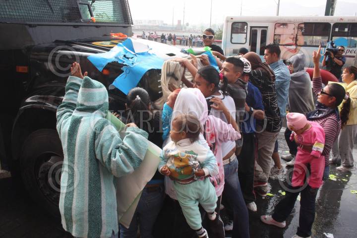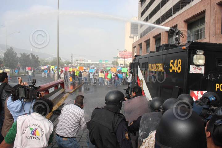 MONTERREY, NUEVO LEÓN, 17FEBRERO2009.- Por sexta ocasión en poco más de una semana y por alrededor de tres horas, los "Tapa calles" bloquearon importantes avenidas de la ciudad, ocasionando disturbios en la vía pública y provocando caos vial. Elementos de la policía estatal, y de la policía federal preventiva realizaron operativos para desbloquear las calles utilizando tanquetas lanza agua y realizaron detenciones. Declaraciones del gobernador de la entidad, señala que estos manifestante los patrocina el crimen organizado para meter presión y así se terminen los operativos militares. FOTO: PEDRO KRISTIAN LOPEZ/CUARTOSCURO.COM
