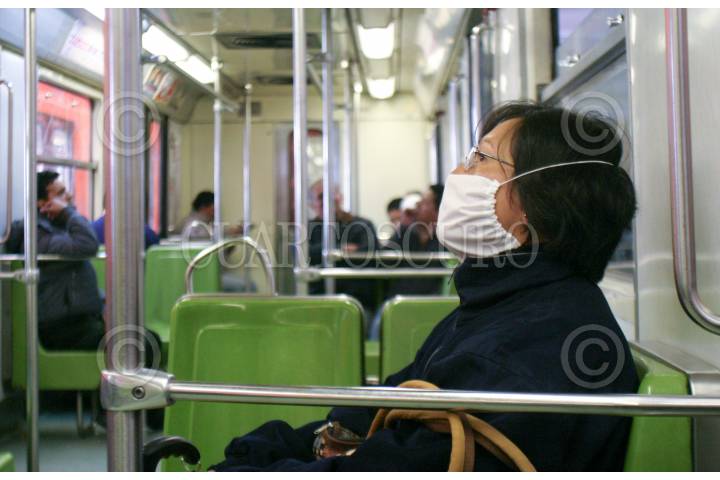 MÉXICO, D.F., 05NOVIEMBRE2009.- Pasajeros del Servicio de Transporte Colectivo Metro de la Ciudad de México, empiezan a utilizar cubre bocas por el virus de la Inlfuenza A-H1N1. El gobierno del Distrito Federal anunció que el semaforo se encuentra en color amarillo por el rebrote de esta enfermedad. FOTO: MISAEL VALTIERRA/CUARTOSCURO.COM