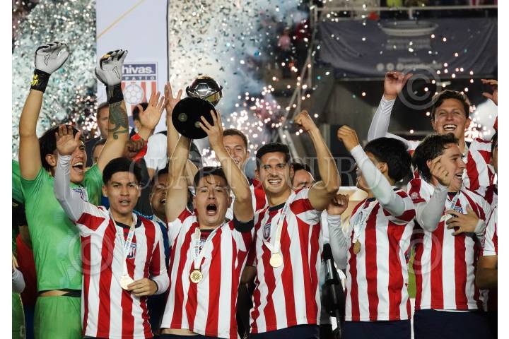 ZAPOPAN, JALISCO, 23NOVIEMBRE2024.-Jugadores de Chivas levantan la Copa de la Liga de Expansión del torneo apertura 2024 de la Liga MX, al imponerse al Celaya en juego que se lleva a cabo en el Estadio Akron, el marcador al final es de 3-2 y el marcador Global 5-3 a favor del equipo de casa. FOTO: FERNANDO CARRANZA GARCIA / CUARTOSCURO.COM