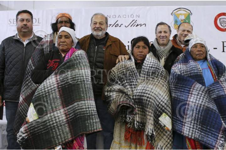 GUACHOCHI, CHIHUAHUA, 28ENERO2016.- El secretario de Desarrollo Social, José Antonio Meade Kuribreña, viajó junto con el empresario Carlos Slim a la Sierra Tarahumara en donde participó en la firma del Convenio de Concertación Sedesol-Fundación Carlos Slim. Dicho convenio tiene como finalidad sumar esfuerzos entre la fundación y la dependencia federal para mejorar las condiciones de vida de diversas poblaciones del país. FOTO: SEDESOL /CUARTOSCURO.COM