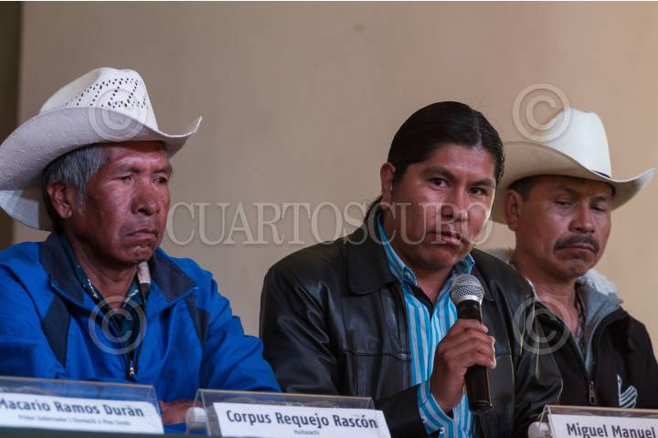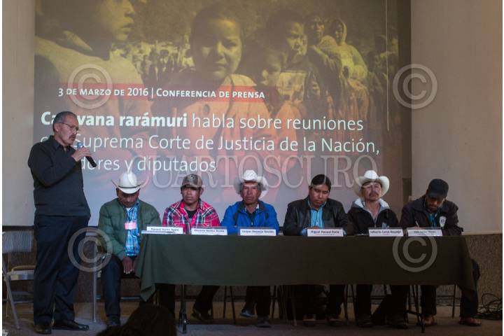 CIUDAD DE MÉXICO, 03MARZO2016.- Indígenas raramuris, encabezados por Miguel Manuel Parra, ofrecieron una conferencia de prensa para hablar de la caravana que realizaron a la ciudad de México, en donde se reunieron con autoridades para tratar el tema de su territorio y sus derechos humanos. FOTO: ISAAC ESQUIVEL /CUARTOSCURO.COM
