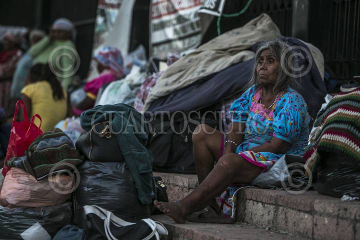 CULIACÁN, SINALOA, 17MAYO2016.- Alrededor de 50 indígenas Tarahumaras realizan un plantón en la catedral de la ciudad en busca de apoyo por parte del gobierno para tener mejores condiciones de vida, educación, clínicas, materiales para sus hogares y la rehabilitación del camino que va de Sinaloa de Leyva al ejido Cuitabaco de donde son provenientes. Después de varias ocasiones de bajar de la sierra de Sinaloa que colinda con Chihuahua, decidieron establecer un plantón indefinido para que el gobierno cumpla de verdad con los acuerdos establecidos anteriormente. Saturnino García comisionado municipal del ejido, menciona que es inaceptable que en esta temporada electoral se gasten millones de pesos y no se tengan unos cuantos para el apoyo que por derecho les corresponde. FOTO: RASHIDE FRIAS /CUARTOSCURO.COM