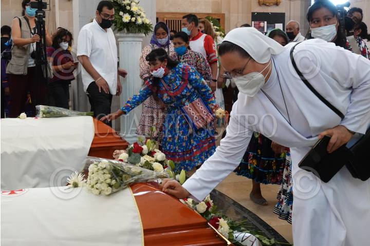 Se llevó a cabo la eucaristía en el Templo del Sagrado Corazón de Jesús de los cuerpos presentes de Joaquín César Mora Salazar y Javier Campos Morales, sacerdotes jesuitas asesinados dentro la Iglesia de Cerocahui, en el municipio de Urique