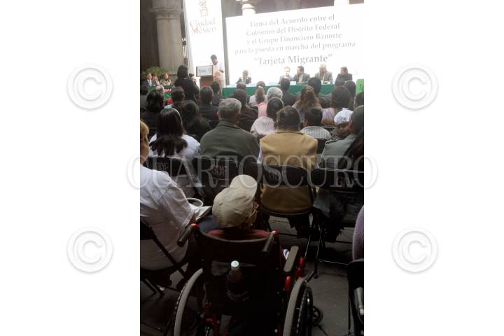 México D.F., a 14 de Noviembre de 2007.- Este medio dia en el palacio del Ayuntamiento se firmó el acuerdo entre el Gobierno de la Ciudad y Banorte para la puesta en marcha de la "Targeta Migrante". FOTO: VICTORIA VALTIERRA/CUARTOSCURO.COM