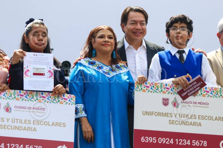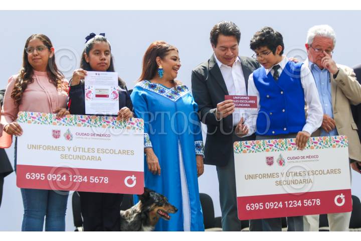 CIUDAD DE MÉXICO. 13AGOSTO2025.- Clara Brugada Molina, jefa del Gobierno de la ciudad y Mario Delgado secretario de educación, en el estadio GNP, entregaron apoyos para útiles y uniformes escolares a jóvenes de secundaria de la CDMX. FOTO: VICTORIA VALTIERRA/CUARTOSCURO.COM