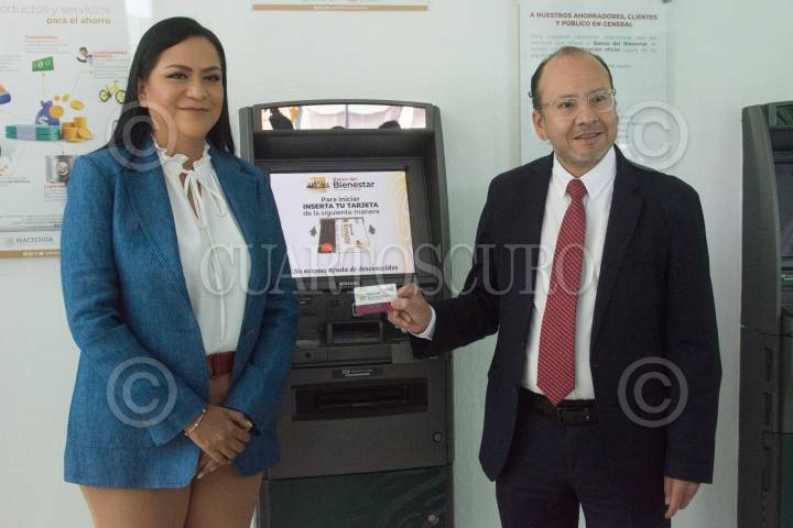 Ariadna Montiel, secretaria del Bienestar, y Victor Manuel Lamoyi, director general del Banco del Bienestar, durante la inauguración de la sucursal del Banco de Bienestar en avenida Constituyentes 1001.