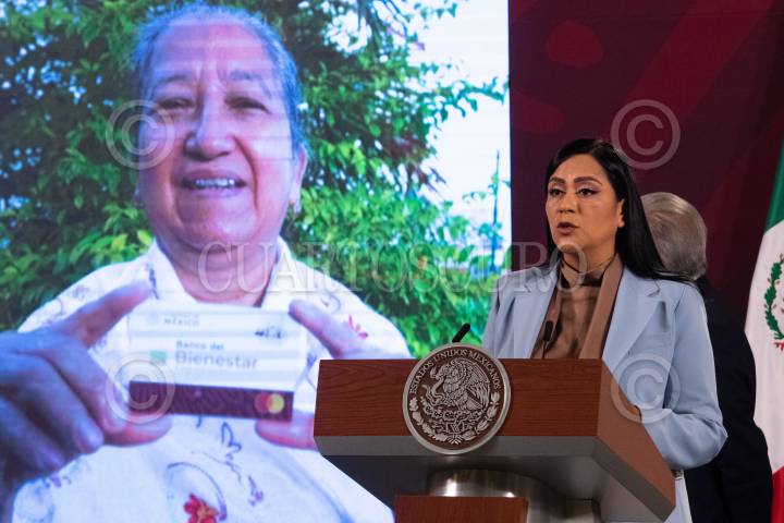 CIUDAD DE MÉXICO, 30DICIEMBRE2024.- Las tarjetas del Banco del Bienestar cuentan con nuevo diseño y ahora tienen la imagen del actual Gobierno de México, caracterizada por la figura de la joven mexicana. Así lo informó la Presidenta de México, Claudia Sheinbaum Pardo, en su conferencia matutina: “Las mañaneras del pueblo”. Los plásticos están destinados para los nuevos beneficiarios de los Programas para el Bienestar: en enero para las beneficiarias de Pensión Mujeres Bienestar y en febrero para la nueva beca universal “Rita Cetina Gutiérrez”. FOTO: BIENESTAR7CUARTOSCURO.COM