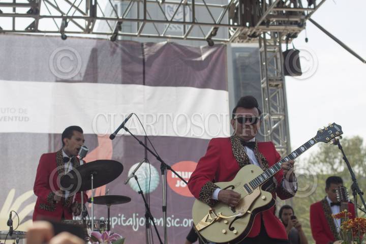 MÉXICO, D.F., 08JUNIO2013.- Los Rebel Cats banda rockabilera ofreció un concierto en la explanada del Monumento a la Revolución en el marco del inicio de la credencialización de la Tarjeta Capital Joven en la explanada del Monumento a la Revolución. FOTO: MOISÉS PABLO /CUARTOSCURO.COM