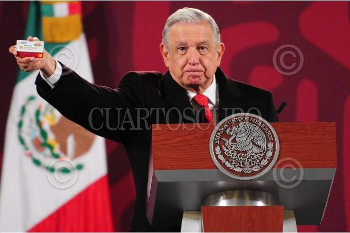 Andrés Manuel López Obrador, presidente de México, muestra la tarjeta del Banco del Bienestar