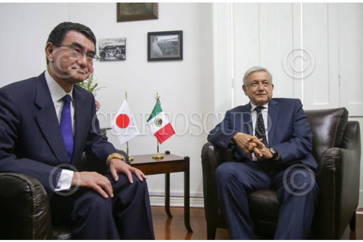 CIUDAD DE MÉXICO, 17AGOSTO2018.- Andrés Manuel López Obrador, presidente electo de México, se reunió con Tarō Kōno, ministro de Relaciones Exteriores de Japón, en la casa de transición del tabasqueño en la colonia Roma. FOTO: PRENSA AMLO /CUARTOSCURO.COM