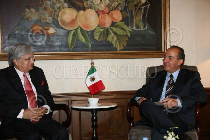 MUMBAI, REPUBLICA DE LA INDIA., 11SEPTIEMBRE2007.- El presidente de la República Felipe Calderón Hinojosa, durante la reunión con e director del grupo TATA, que tuvo lugar en el Hotel TAJ PALACE. FOTO ALFREDO GUERRERO/CUARTOSCURO.COM