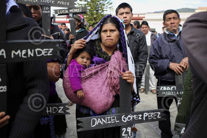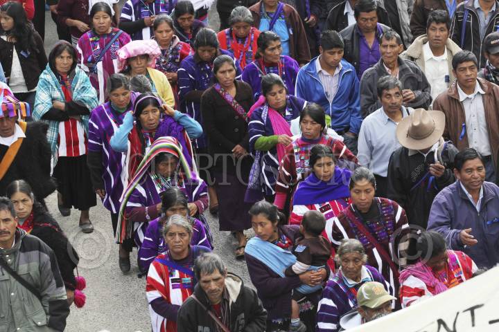 SAN CRISTOBAL DE LAS CASAS, CHIAPAS, 25ENERO2014.- Miles de indígenas de las diferentes etnias de Los Altos de Chiapas y otras regiones de la entidad realizaron una peregrinación que concluyó con una misa en la plaza de San Cristóbal de Las Casas, para recordar así la memoria del obispo Samuel Ruiz García, fallecido hace 3 años,quien se desempeñó durante 40 años como obispo de la Diócesis de San Cristóbal, en la región Altos, una de las más grandes de Chiapas, con una población mayoritariamente indígena. Agrupados en la organización “Pueblo Creyente de la Diócesis de San Cristóbal de Las Casas”, unos diez mil indígenas tzotziles, tzeltales, choles, tojolabales y de otras etnias asi como un grupo de la comunidad de Acteal y del ejido Puebla, marcharon para recordar al obispo, a quien llamaron Jtatik (padre en tzotsil) y El Caminante por haber sido e religioso que más caminó entre las comunidades de las 42 parroquias de su circunscripción., también los participantes en el congreso de la madre tierra celebrado esta semana en la ciudad participaron en la peregrinación y terminaron con una misa en la Catedral. FOTO: ELIZABETH RUIZ /CUARTOSCURO.COM