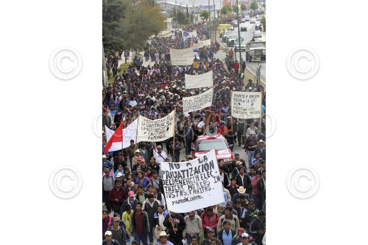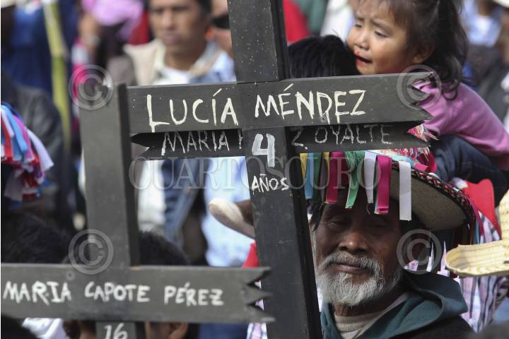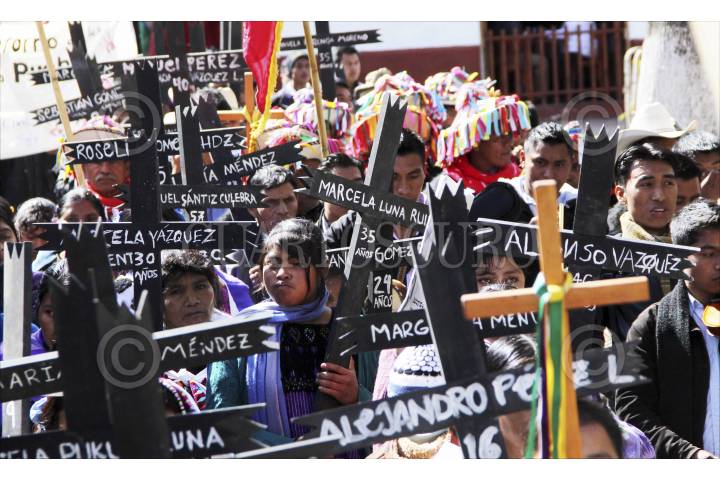 SAN CRISTOBAL DE LAS CASAS, CHIAPAS 25ENERO2014.- Miles de indígenas de las diferentes etnias de Los Altos de Chiapas y otras regiones de la entidad realizaron una peregrinación que concluyó con una misa en la plaza de San Cristóbal de Las Casas, para recordar así la memoria del obispo Samuel Ruiz García, fallecido hace 3 años,quien se desempeñó durante 40 años como obispo de la Diócesis de San Cristóbal, en la región Altos, una de las más grandes de Chiapas, con una población mayoritariamente indígena. Agrupados en la organización “Pueblo Creyente de la Diócesis de San Cristóbal de Las Casas”, unos diez mil indígenas tzotziles, tzeltales, choles, tojolabales y de otras etnias asi como un grupo de la comunidad de Acteal y del ejido Puebla, marcharon para recordar al obispo, a quien llamaron Jtatik (padre en tzotsil) y El Caminante por haber sido e religioso que más caminó entre las comunidades de las 42 parroquias de su circunscripción., también los participantes en el congreso de la madre tierra celebrado esta semana en la ciudad participaron en la peregrinación y terminaron con una misa en la Catedral. FOTO: ELIZABETH RUIZ /CUARTOSCURO.COM