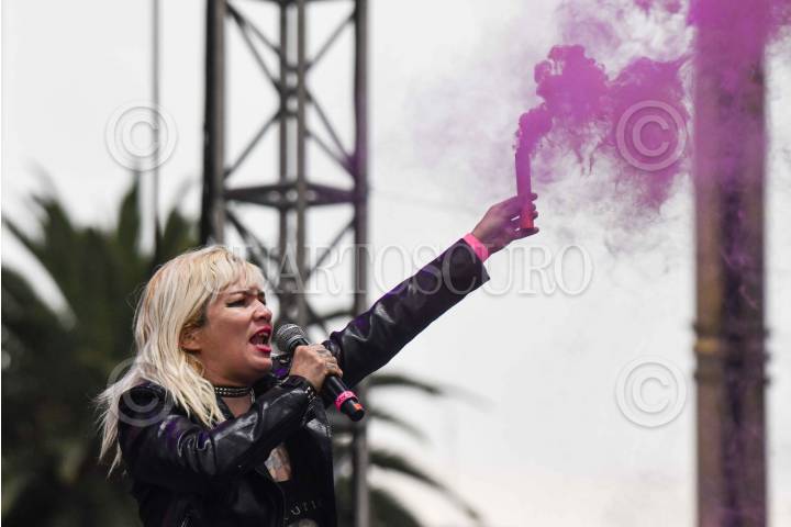 CIUDAD DE MÉXICO, 01MARZO2025.- Tatiana "Taty Bloody Batty" vocalista de Bloody Benders, durante su participación en el concierto “Sirenas al ataque: homenaje a las rockera mexicanas” realizado en la explanada del Monumento a la Revolución. FOTO: MARIO JASSO/CUARTOSCURO.COM