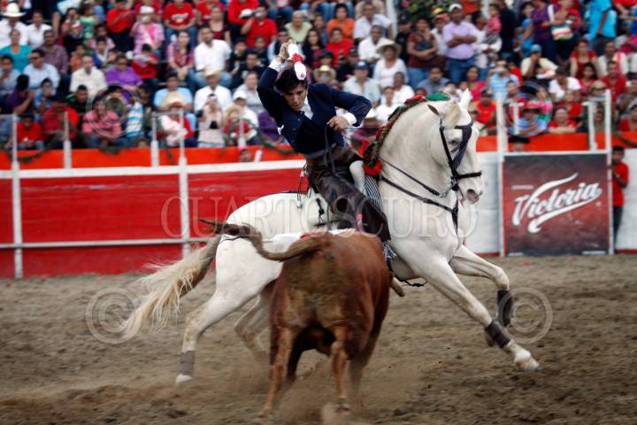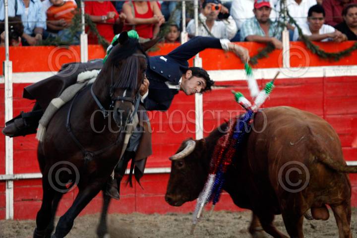 TLACOTALPAN, VERACRUZ, 01FEBRERO2011.- Esta tarde en honor a la Virgen de la Candelaria se efectuó una corrida de toros donde fueron lidiados 6 animales del rancho Vergel por los Rejoneadores; Horacio Casas, Diego Ventura y Enrique Fraga en la Plaza de Toros Portatil Española "La Ronda". FOTO: FÉLIX MÁRQUEZ/CUARTOSCURO.COM