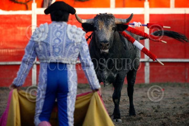 CIUDAD DE MÉXICO, 09OCTUBRE2016.- Tarde fría en la Monumental Plaza de Toros México. De los tres novilleros que lidiaron hoy, sólo José María Pastor logró las ovaciones del público. Rocio Moreli y André Lagravere se mostraron torpes y faltos de temple. Moreli se llevó abucheos en su segunda faena. FOTO: DAVID POLO /CUARTOSCURO.COM