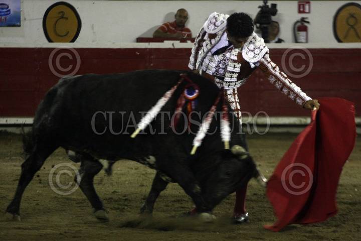 CIUDAD DE MÉXICO, 09OCTUBRE2016.- Tarde fría en la Monumental Plaza de Toros México. De los tres novilleros que lidiaron hoy, sólo José María Pastor logró las ovaciones del público. Rocio Moreli y André Lagravere se mostraron torpes y faltos de temple. Moreli se llevó abucheos en su segunda faena. En la imagen, sin pena ni gloria, André Lagravere. FOTO: DAVID POLO /CUARTOSCURO.COM