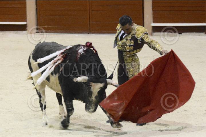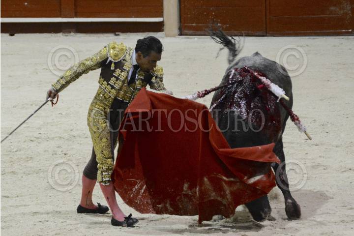 CIUDAD DE MÉXICO, 23OCTUBRE2016.- Séptima novillada de la temporada chica en la Plaza de Toros México. Rafael Serna, Gerardo Rivera y Manuel Gaona lidiaron toros de San Marcos en una tarde floja, a excepción de las faenas de Serna, en la imagen, quien en su segundo toro cortó una oreja. FOTO: DAVID POLO/ CUARTOSCURO.COM