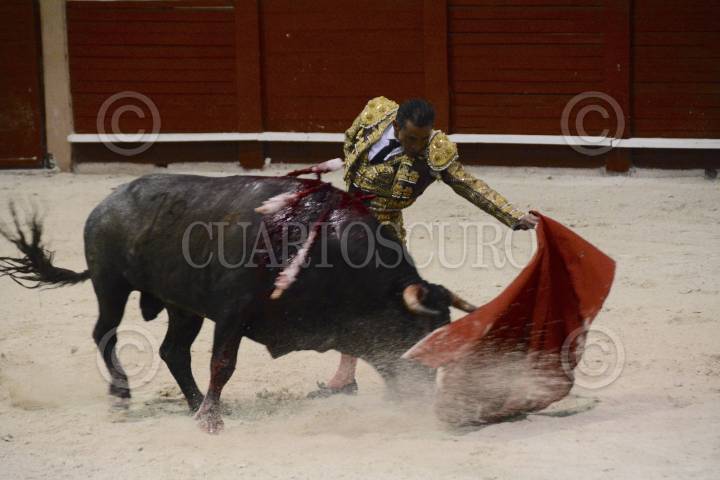 CIUDAD DE MÉXICO, 09OCTUBRE2016.- Tarde fría en la Monumental Plaza de Toros México. De los tres novilleros que lidiaron hoy, sólo José María Pastor logró las ovaciones del público. Rocio Moreli y André Lagravere se mostraron torpes y faltos de temple. Moreli se llevó abucheos en su segunda faena. En la imagen, el mejor de la tarde, José María Pastor. FOTO: DAVID POLO /CUARTOSCURO.COM